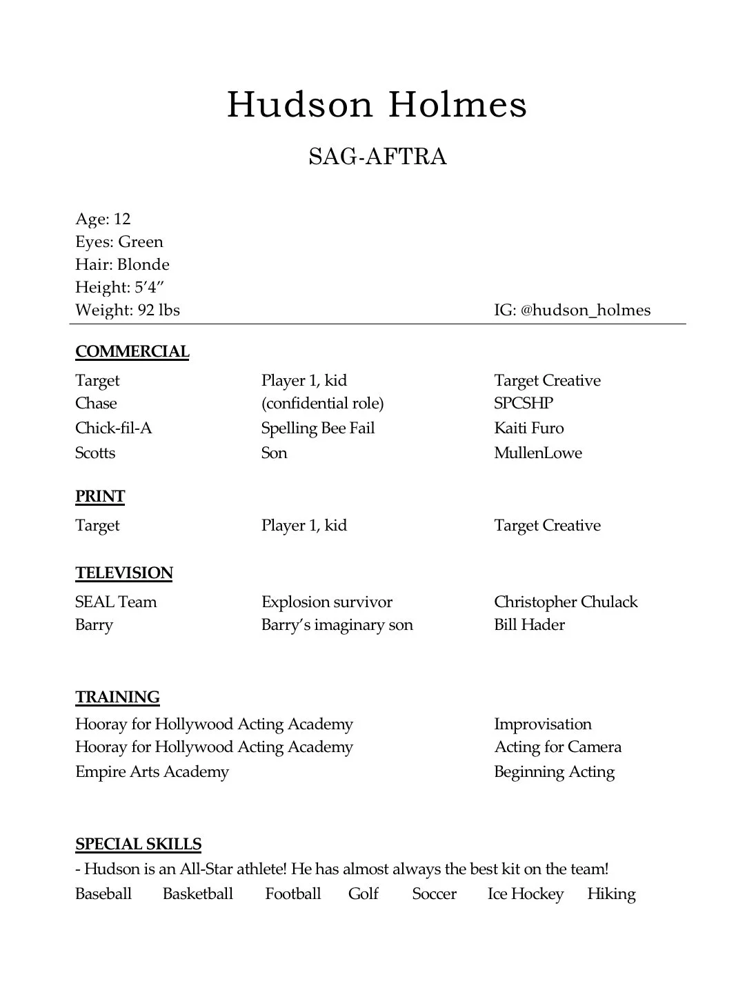 Reel: “Barry” (imaginary son), Hudson Holmes